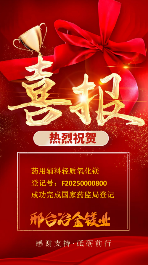 我司旗下藥用輔料輕質(zhì)氧化鎂(登記號(hào):F20250000800)已成功完成國(guó)家藥監(jiān)局登記,現(xiàn)正式開放制劑關(guān)聯(lián)合作。